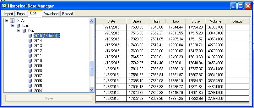 The remaining issue is the DJIA Index's timestamp that I described in my previous messages. The Yahoo symbol ^DJI is correct. http://finance.yahoo.com/q/hp?s=%5ED...torical+Prices is the link.