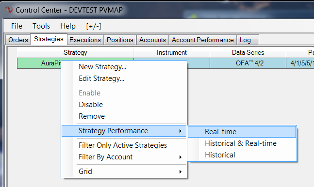 Typically I will right-click on a strategy from the Strategies tab and select Strategy Performance->Realtime to get a report. See Attached. I can't select "Group trades by ATM strategy" on the dialog window that comes up after that. So in other words, selecting performance reports using this right-click method from the strategy tab will not show partial fill commissions correctly. Maybe this can be addressed in a future release of NT.