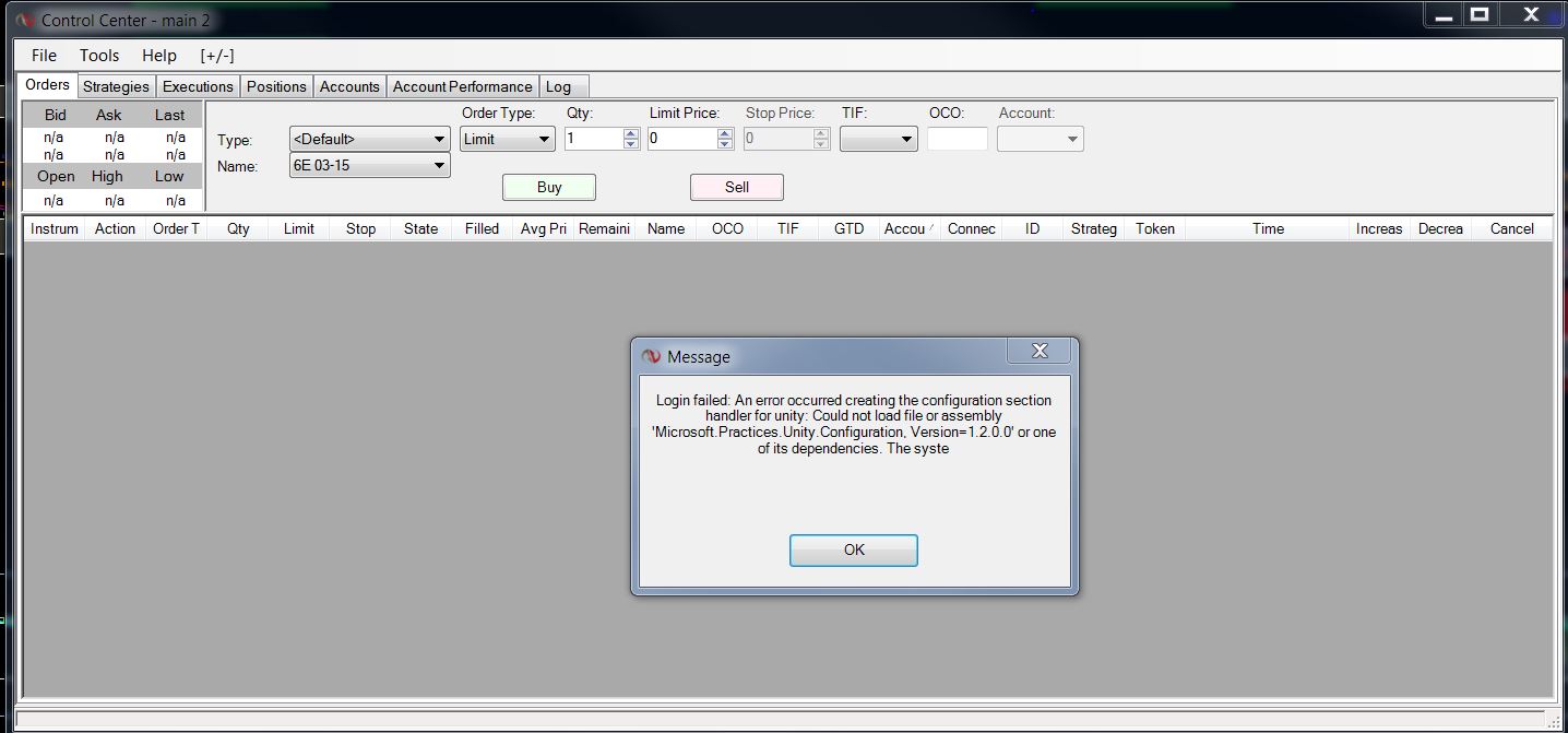 Login failed Ninjatrader Continuum