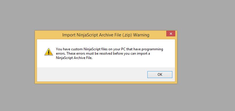 I am trying to import the GOMI Recording package 2.6 and I am getting an error saying that I have custom code that has errors and therefore can not import any new indicators until they are fixed. The problem is that I have not made any changes to any of my customs scripts in quite a while and I have imported plenty of indicators since then with no problems.