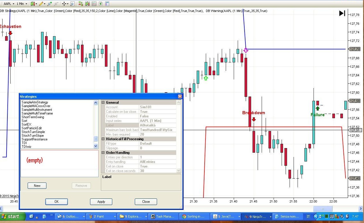 Actually, this script is the faulty part of a larger code that I'm using not as an indicator, but as a strategy enabled from Control Center -> Strategies, not from a chart. Of course I do have a couple of charts (sometimes with AAPL) open in my workspace, but they shouldn't be affected by the code, at least as far as I know and see in the attached chart.Last edited by Mauripasto; 06-17-2015, 12:17 AM.