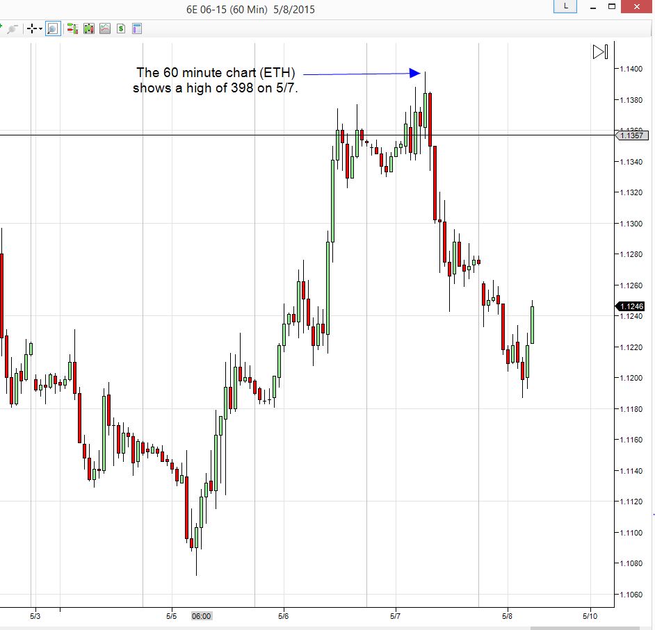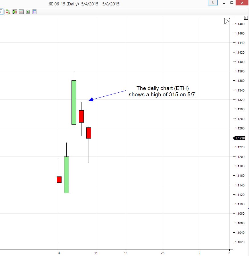 My 60 minute chart indicates a different high for the day than the high on the daily chart. I've attached snapshots of the charts. Any suggestions would be helpful.