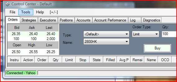 Here is a Hong kong stock that i want to chart from yahoo connection. The exchange is HKSE (Hong Kong Stock Exchange) and is not available on the list. I chose default and 2800.hk as the symbol and it doesnt work. What do i have to do to get this hong kong stock to plot on my chart? ThanksTags: None