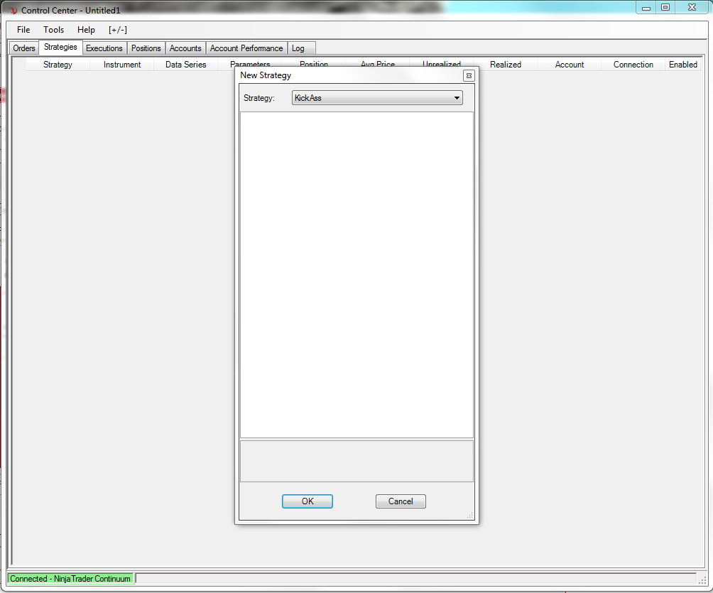 For example, say I want to backtest my new strategy. When I click backtest, then click on my Strategy, its all blank underneath. But if I click on the ATMstrategies or one of my wizard generated ones, input options come up immediately.