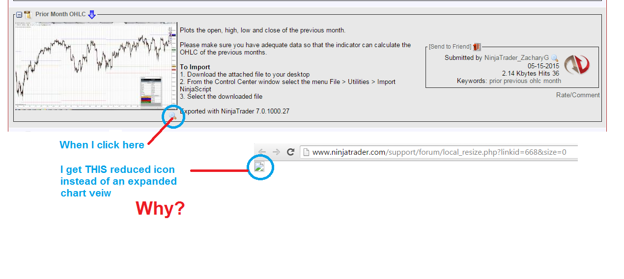 When trying to magnify the screenshot of an indicator in the NT7 indicator download section it will reduce it to an icon in a new page instead of expanding the screenshot. How can that be fixed?