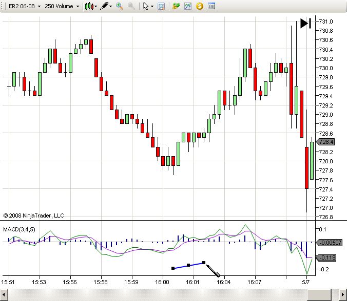 Example 2: Drawing a small, approximately 1/4 inch line vertically in the bottom indicator pane, the line disappears on the second click.