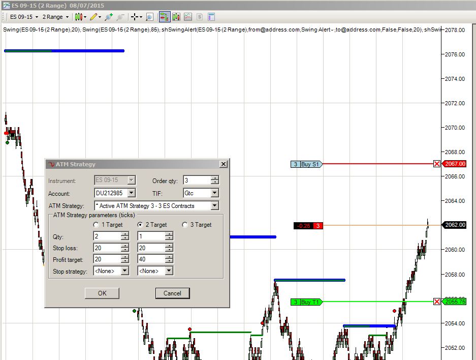 As you can see the ATM should create 1 stop loss and 2 profit targets. However, only 1 stop loss and 1 profit target