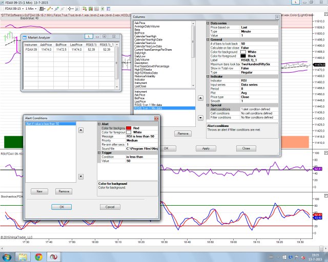 Another question : is it possible to use Stochastics in combination with the RSI or do I have to program it by a developer? Example LONG : I want to hear a soundsignal when RSI is crossing the 50 level from below and at the same time Stochastics fast line is already above 50.... In fact, I want to hear a soundsignal when both indicators are above 50 for LONG and below 50 for short. Please, let me know. Thanks a lot!