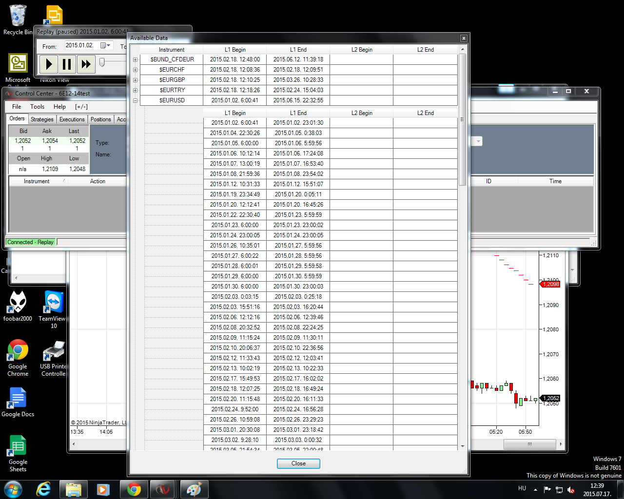 I tryied to download replay data, as I read in manual. File menu >Utilities>Download replay data, Name: EURUSD, Date 02/01/2015. Then OK. The downloading completed. But the data stream is very incomplete. I checked in the Available Data menu, and there are gaps takes 10-200 minuts. What is the reason, and how can I get all of the L1 data of a month, or a half a year?