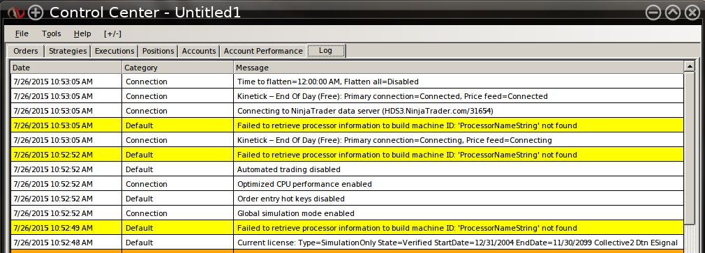I'm not sure how to correct this issue, maybe others can comment? Here is the log error message in NT7:If the machine ID cannot be created it would seem it will not be compatible with Addon products licensing.