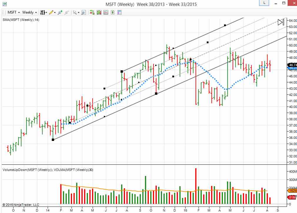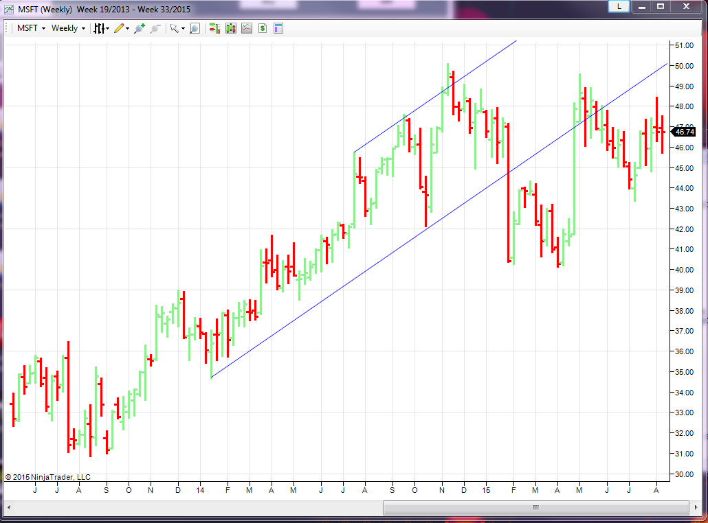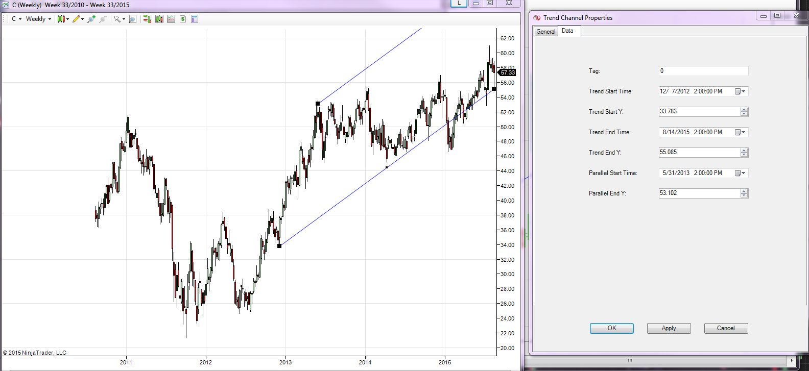 Yes, I used similar lines in my Weekly chart as you did. The bottom line starts at 1/17/2014.