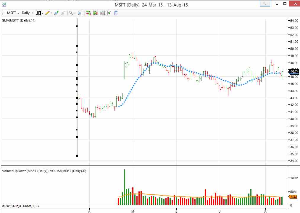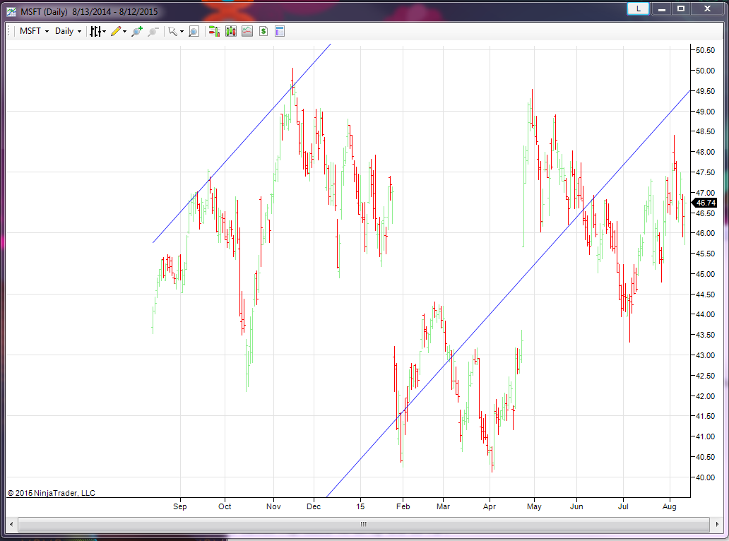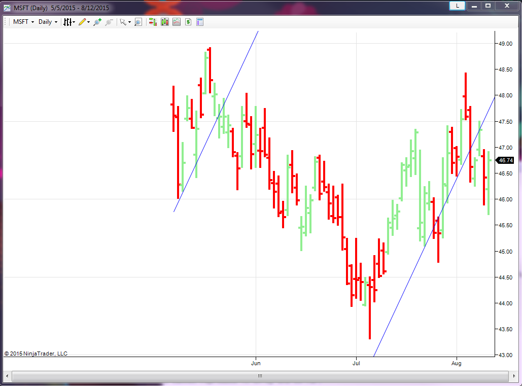 Are you saying that in your daily version on MSFT, you have trendlines that start off to the left before any bars?