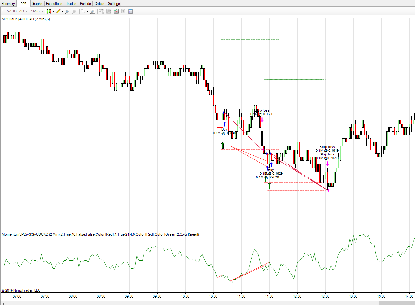 So I put it on "real-time" sim account to see how the strategy works in real-time. But I cannot fgure out how to see the trades on a chart. I tried seeing the real-time performance, then choosing the Chart tab, but there are no trades on it. Then, I go to the Trades tab and right click to see chart, but then it shows the one trade on the right edge of the chart (which makes it unreadable).