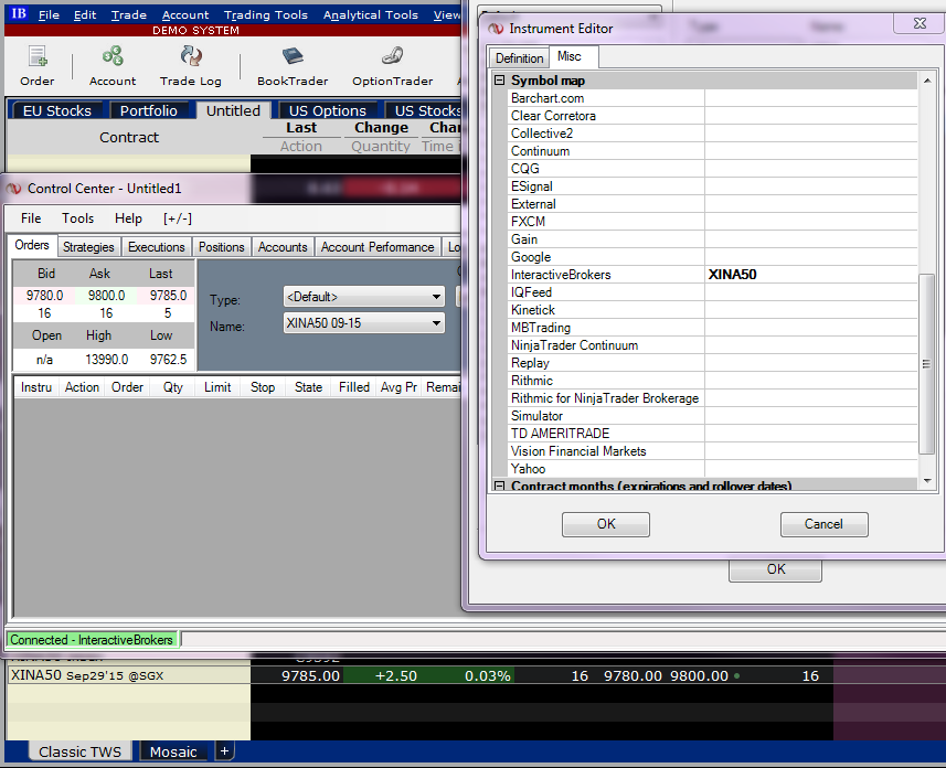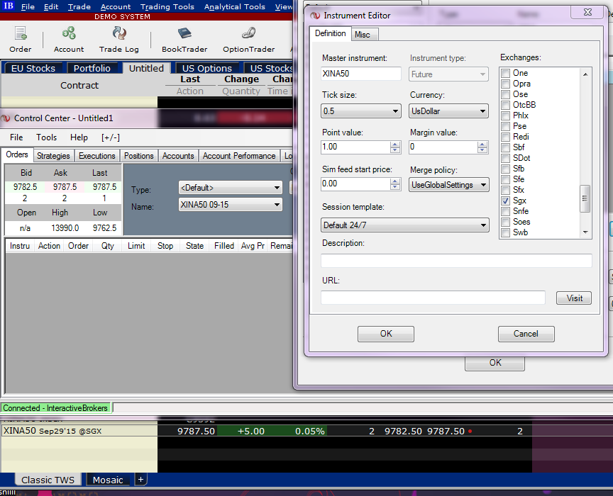 Setup FTSE/Xinhua*China*A50 Future with IB