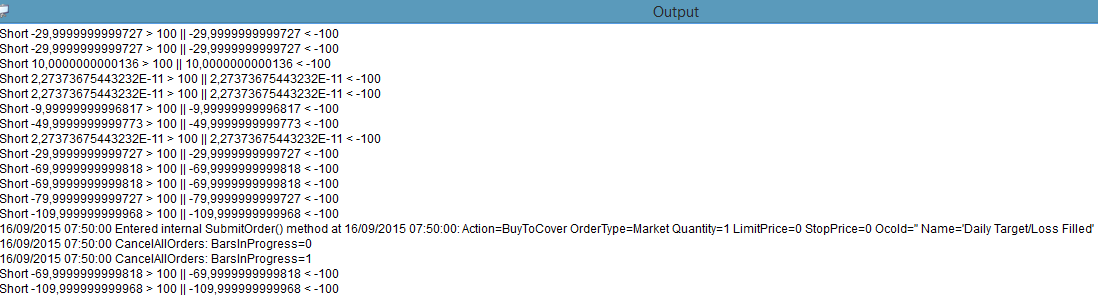 Print(Position.MarketPosition + " " + totCumProfit + " > " + dailyProfit + " || " + totCumProfit + " < " + -dailyLoss);