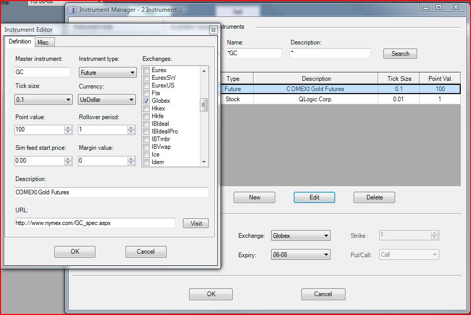 In Instrument Manager, when I choose GC, which is defined as COMEX Gold Futures, the only exchange I am able to select is Nymex.