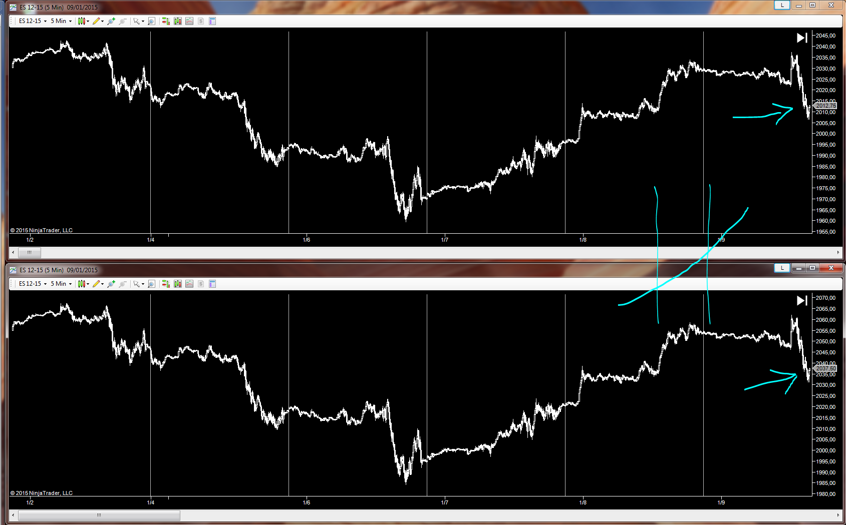 Take a look at the attached figure, has two graphs with the same instruments and the same timeframe, however the values of the price are different.