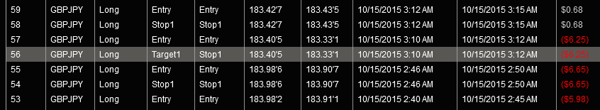 here I`ve been stopped out with a 1 pip stop loss. but its actually set to 7 in the strategy.