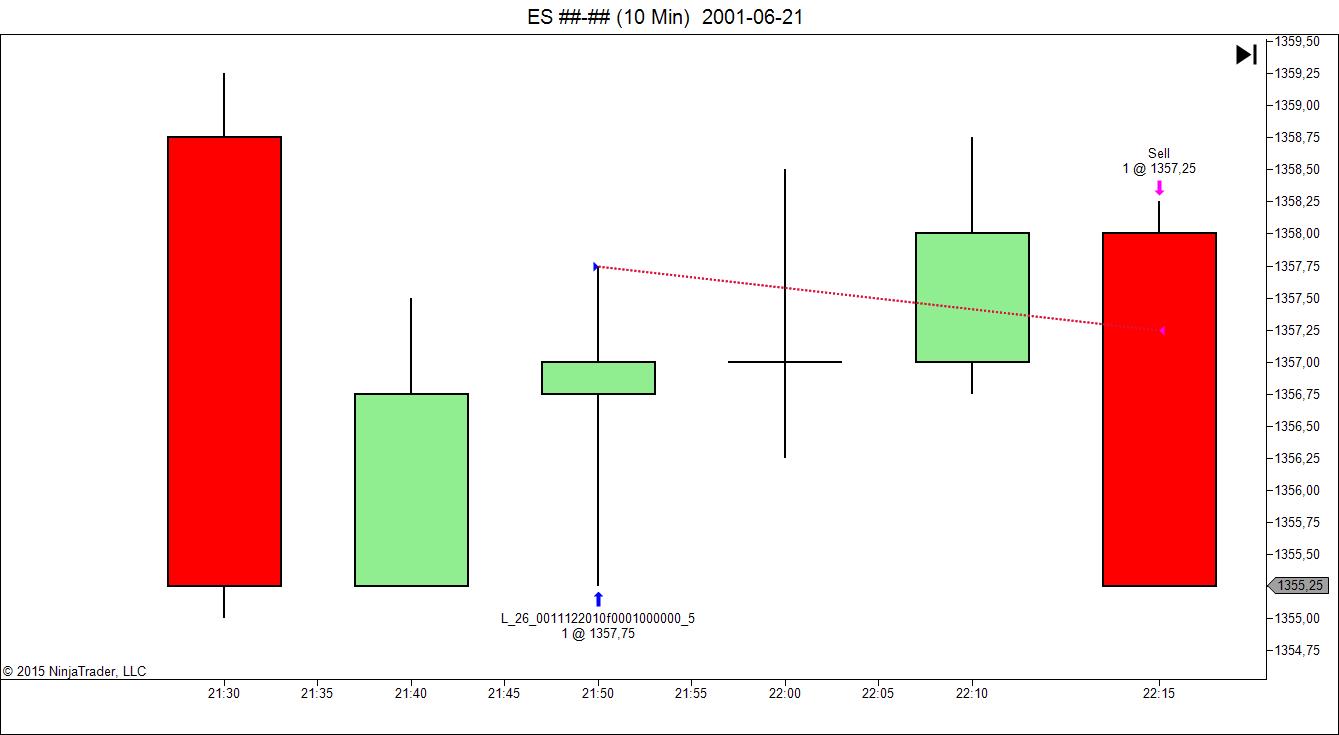 - I use a 10 min ES chart where entry orders are submitted on bar close of the 10 min bars on a secondary 1 min TF with entry method EnterLongStopLimit(barsInProgressIndex = 1, liveUntilCancelled = TRUE, ....).