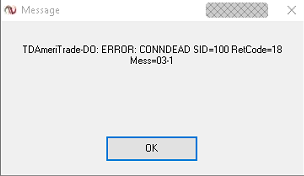 TDAmeriTrade-DO: ERROR: CONNDEAD SID=100 RetCode=18 Mess=03-1