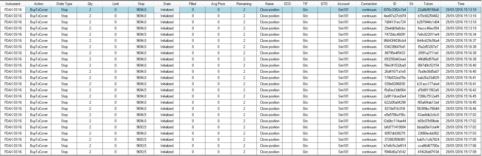 I don't know how, I have 24 orders in ninja trader simulation account that are impossible to cancel them. I have tried everything and I amb no able to cancel all. I don't know what is happening and why are all these orders there.