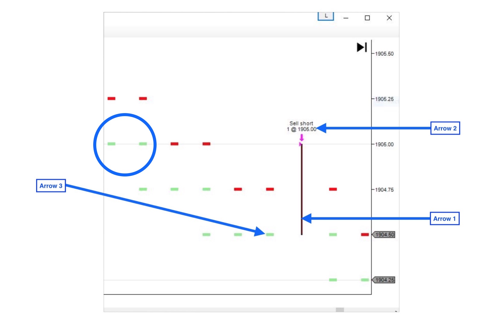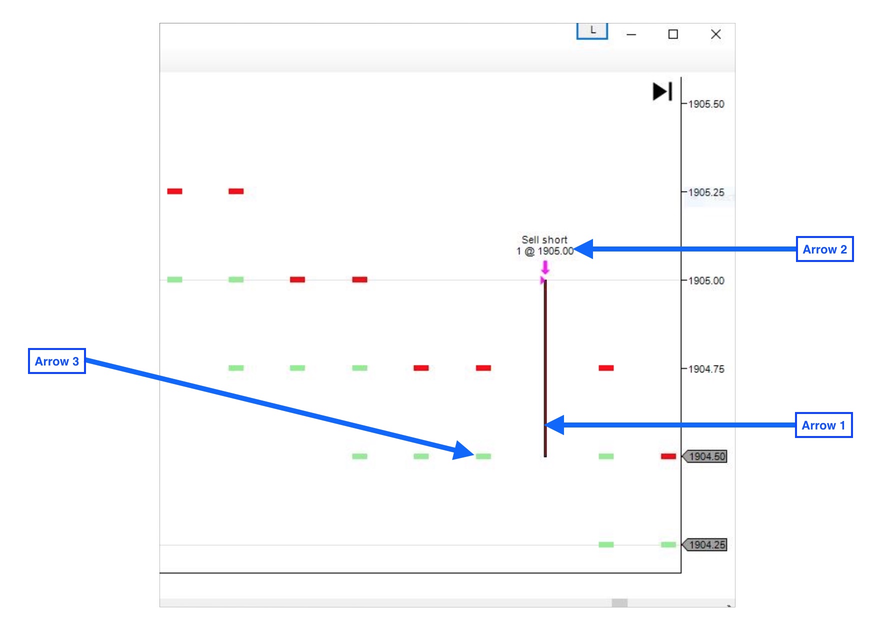 4. "Arrow 2" points to the 1905.00 short entry price mentioned above.