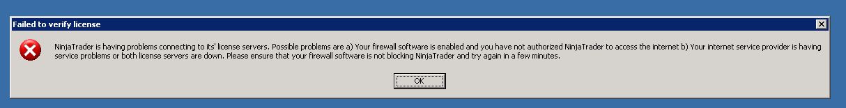 Did you try the WinXP/Vista hack?Originally posted by sean003.5 View PostI get the attached error message when trying to run NT after upgrading to V31. This is only on my VPS, which is running Windows Server 2003. The version running on my home PC (Windows 7) is fine. I've disabled the firewall and checked the internet connection but same result.