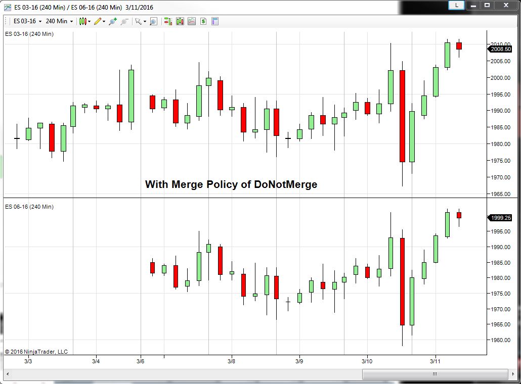I must be missing something else. I tried "do not merge" option, and have restarted NT. However my chart is missing a lot of bars compared to a different trading platform. I am looking at the 06-16 ES (and it only shows bars for 3/10, none for 03-16, which is correct).