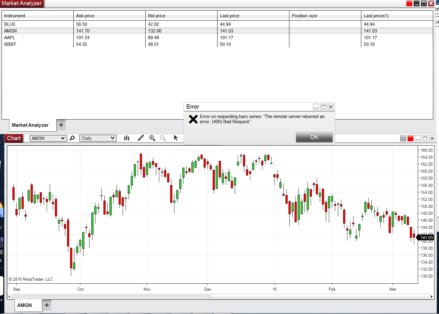 I can see you're using NinjaTrader 8, which is currently in an open beta -- a testing phase, so at this time, our goals are to find what causes errors like this so we can resolve them for wider release, not resolve the issue you're experiencing. If you're new to NinjaTrader, I recommend downloading NinjaTrader 7, as it is fully functional and has a lot of resources already available.