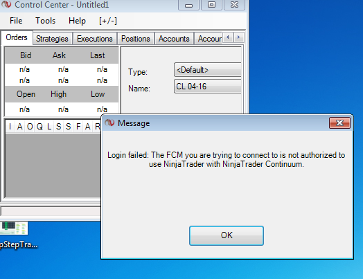 I have a brokerage account with Continuum. I've been connecting for no problem for the last few months. All of a sudden when I try to connect, today, I get the following error message "Login failed: The FCM you are trying to connect to is not authorised to use NinjaTrader with NinjaTrader Continuum