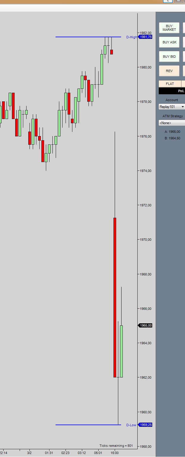 When I download replay data and try to replay it, it does not divide the data into separate bars but prints the data into one or a couple of big bars once starting the replay.