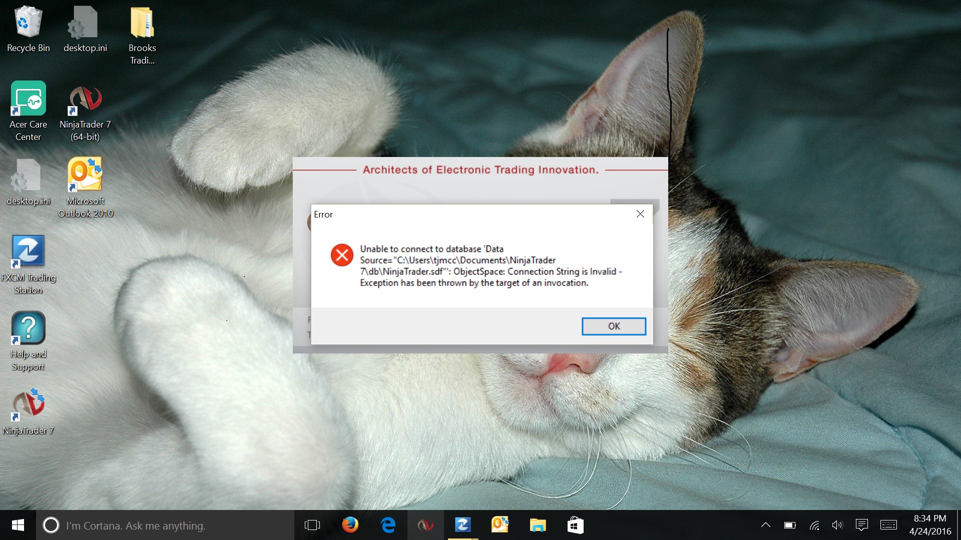 I get the message Unable to connect to database... I have attached the pic of the message as well.