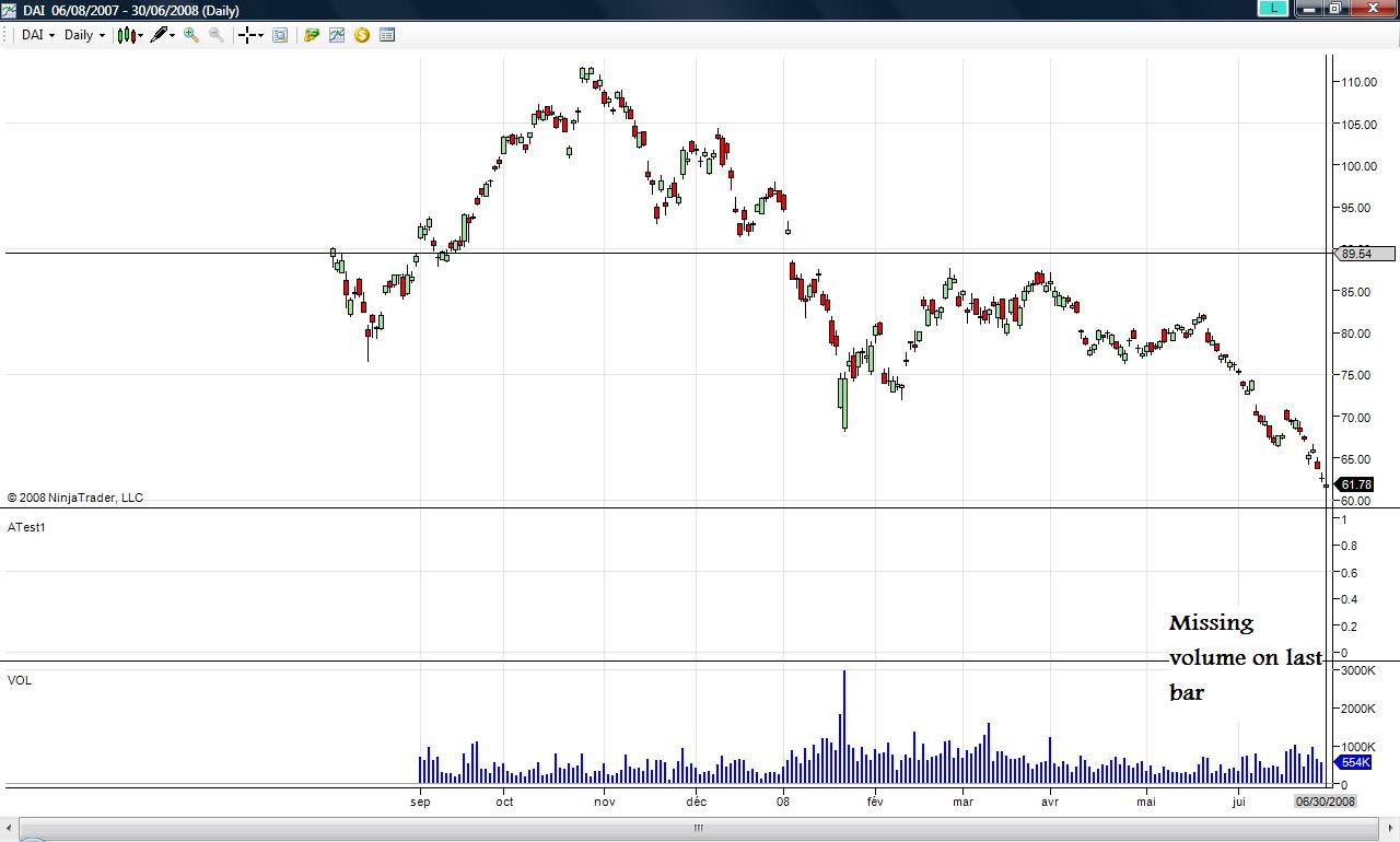 The volume of the last day is missing on my chart. How can I fixe this. i use IB feed.