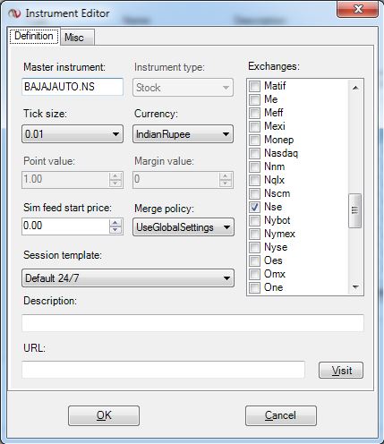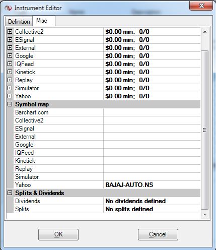 These are the symbols for NSE (India). I have tried to manually add the symbols in the Instrument Manager but it shows an error 'Error on loading chart data for 'BAJAJAUTO.NS Default': Invalid Symbol Trading in NSE'