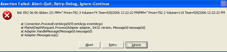 I am using the most recent Ninja5.2.0.1 version with IB TWS Build 858.6 (May 1) and am receiving the attached error from Ninja. The DOM will work for a while (several minutes) and then I will receive the following error.