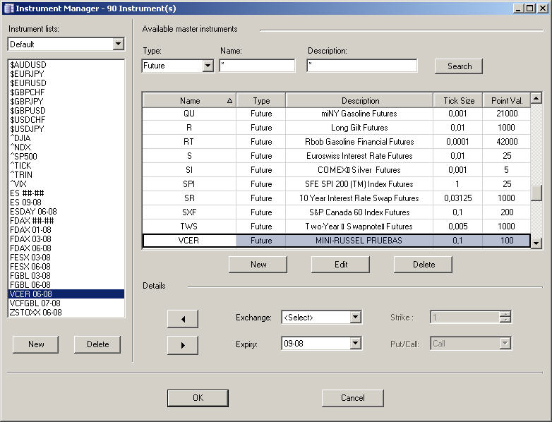 Finally I add the VCER with Exchange=Default and Expiry=06-08 to Default list.