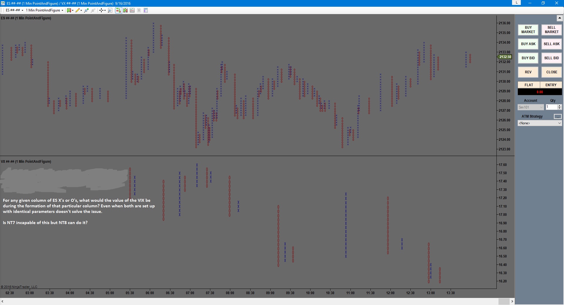Is there a way to have ES & VIX plot (non-time based bars) on the same chart (separate panels) but be in sync? I've included a pic with a note to illustrate the issue?
