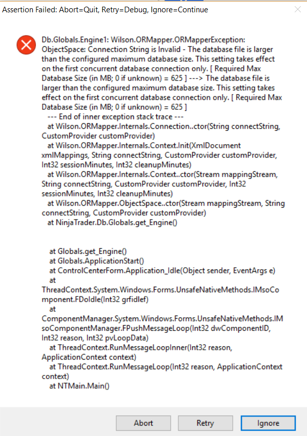 I tried to open Ninja today and got the attached errors...