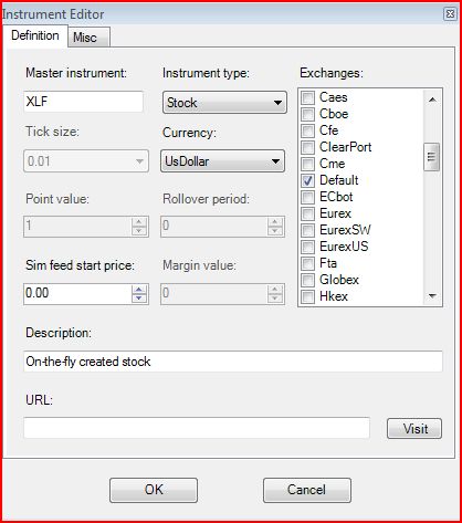 With IB as feed, I am able to get Data and chart XLF in Quote Tracker Charting Tool.