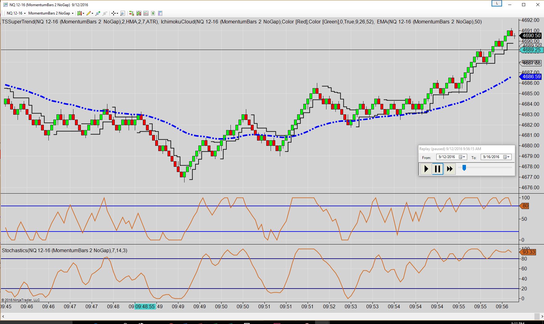 While doing market replay I noticed a bar formed differently than it did when I was offline and looking at a chart for the same time period. It is for NQ 12-16, unirenko bars 1/1/3. I attached screenshots of each.