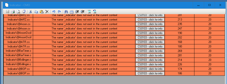 If you are unsure as to what the error is indicating, please send me a screenshot of the NinjaScript File column and Error column fully visible (not to be confused with the Code column)