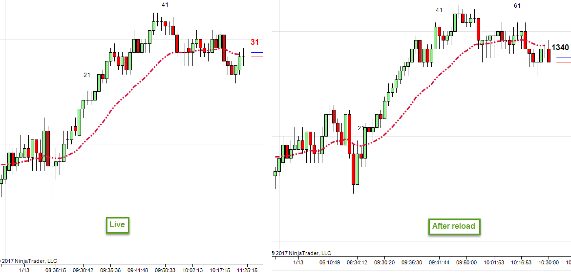 I understand real-time won't look the same as historical - I get that, and I expect little differences especially on a tick chart. But we're talking about a big difference of thousands of extra ticks being added to the chart on reload (over 20 bars on my 2000 tick chart). What's up with this? I can't confidently enter on a chart if I think price isn't actually trading at that level. Should I HAVE to even reload? I wouldn't think so barring a technical glitch on my platform but you tell me.