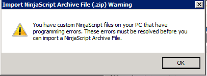 When i delete the newly imported version and after re-start tried to import it again, it still gives me a message; "You have custos Ninjascriptfiles on your PC that have programming orders. these errors must.... etc.
