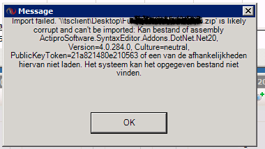 my programmeur send me a file ( strategy update ) which i was unable to import. I clicked yes a few times to overwrite the indicators but in the end NT7 warned me it was unable to import it.