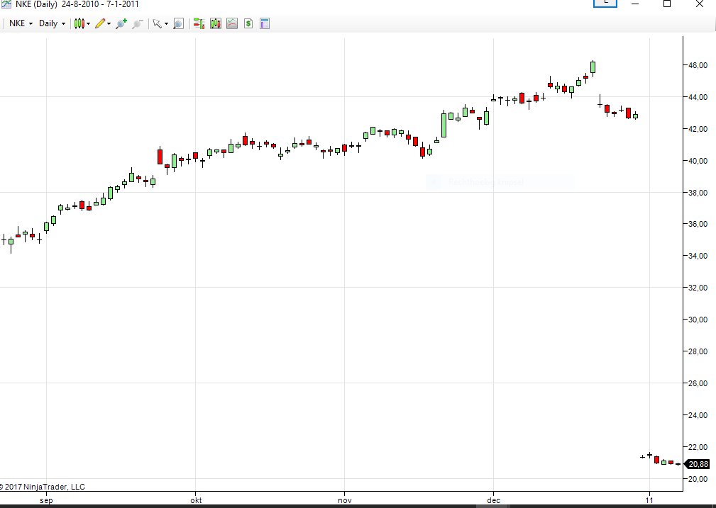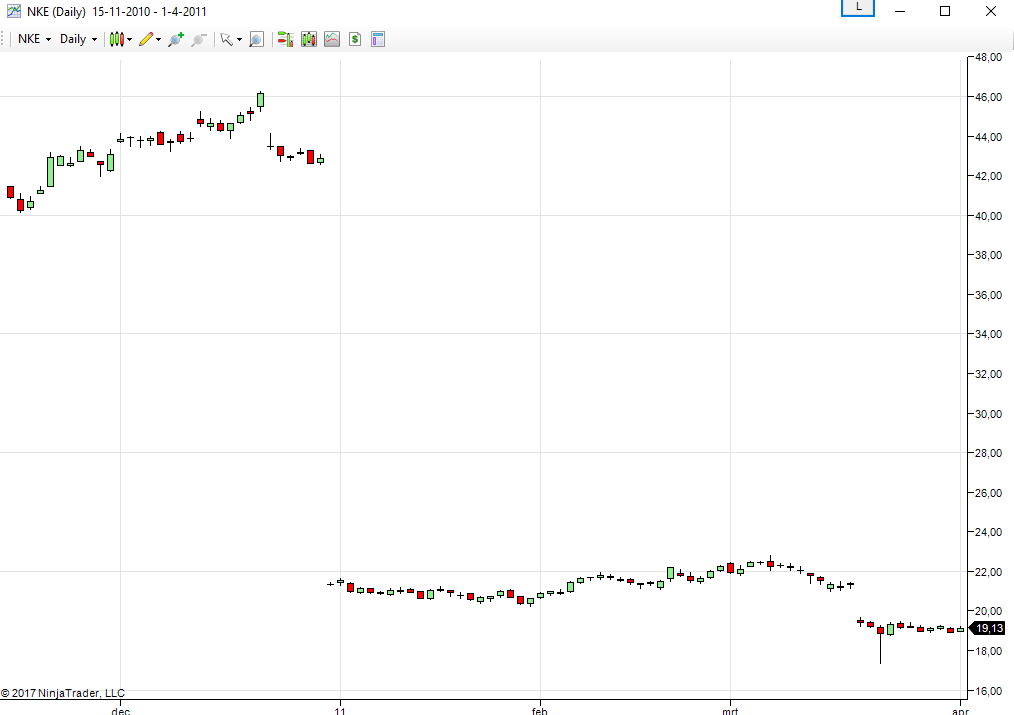 However, I still see a very large jump in price for NKE on Jan 1 2011 that I do not see on the NT8 chart I posted below. See attachment.