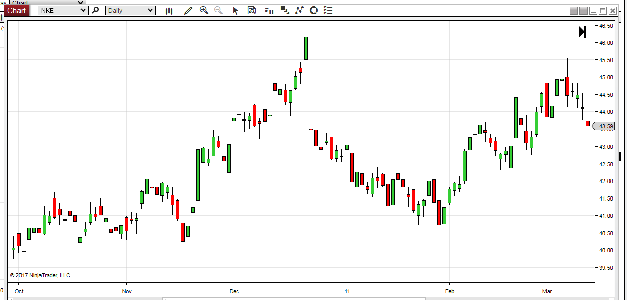I have created a chart twice with daily NKE bars from 7-1-2010 t0 7-1-2011.
