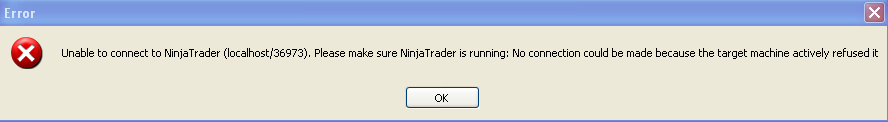Any thoughts as to what causes the error message I attached in my previous posts. Its the connection error I receivewhen I load the NeoTicker strategy that calls the DLLeven though Ninja is up and running regardlessif I am connected to IB, an external data stream, ornotat all.