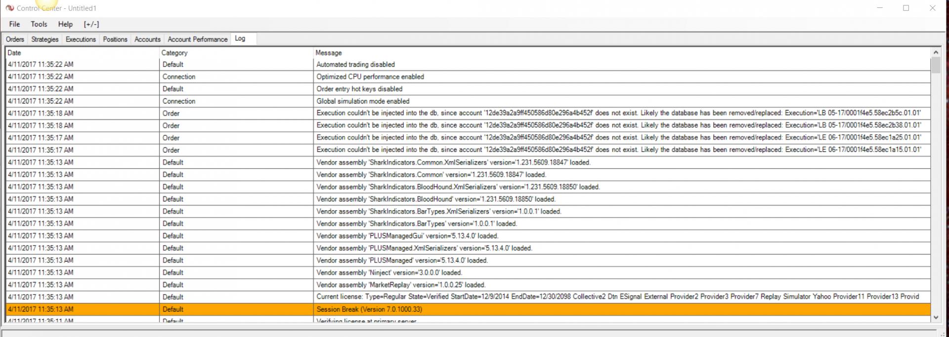 I've uploaded a screen scrape of the NT Log telling me that it can't restore 3 strategies that I previously deleted using NT.
