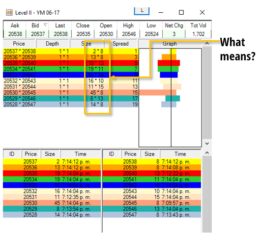 I have also attached a screen shot which shows the Level 2 window beside a superdom, pointing out what this row means.