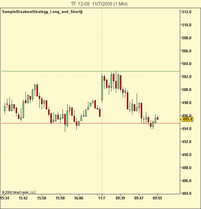 I've tried to add a short side condition to the SampleBreakoutStrategy. I wasn't able to get both horizontal lines plotting even though they have unique tags. Haven't run a replay to see if it's taking trades there either.